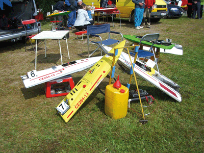 Mistrovství ČR pokračovalo 23. – 24. května 2015 druhým závodem v ATC Břehy u Přelouče. Mistrovský závod s mezinárodní účastí přilákal jak téměř kompletní sestavu českých závodníků oživenou účastí rakouských modelářů, tak i silnou účast závodníků ze Slovenska. Počasí; celkem bez deště, zato však nepříjemně větrné; vyvolávalo na hladině poměrně velké vodní plochy vlny, které rychlým člunům příliš nevyhovují a tak málokteré modely absolvovaly závody bez překlopení na vlnách. Ani při nedělních finálových jízdách nebyla situace o mnoho lepší. Tím, že se jednotlivých závodů mistrovství zúčastňují i zahraniční účastníci, je pro naše modeláře dobrá příležitost ověřit si výkonnost jednotlivých modelů. Asi vůbec nejrychlejší se jevila patnáctka Lukáše Vítka, který se v roce 2013 stal juniorským mistrem světa. Nyní je však již seniorem a tak má pozici poněkud ztíženou. Ani jeho model se právě pro vyšší rychlost na vlnách vždy neudržel, a rovněž ve finále dvakrát předvedl akrobatický výkrut s dopadem zpět na vodu v poloze na zádech. Na druhou stranu měli závodníci dobrou možnost si ověřit stabilitu svých modelů a možná se pokusí ji trochu zlepšit. Vše špatné bývá někdy k dobru. I letos je spokojenost s mladými nadějemi. I když už dva ještě z loňské skupiny elévů jezdí se seniory v hlavních závodech, stále je jich téměř plné dvanáctičlenné startovní plato. Pravda, větší polovina z nich je z rodin, kde jezdí i otec a dělá jim mechanika. Ale je to běžné u všech sportů; určité geny se dědí a rodičům dělá dobře, když mladí jdou v jejich stopách.
