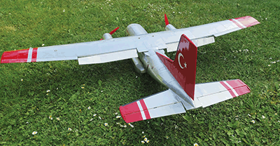 Transalla jsem postavil již před několika lety jako můj první dvoumotorový model. První let proběhl v květnu 2019. Model je postaven klasickým způsobem, převážně z balzy, podle plánku p. Radka Skočdopole, který jsem v některých částech upravil pro větší podobnost s předlohou, stále se však ale jedná maximálně o polomaketu. Rozpětí modelu je 1300mm a to odpovídá měřítku přibližně 1:30, letová hmotnost necelých 1500g podle použité pohonné baterie. Nejzajímavější na celém modelu je ale potah, který je celokovový, zhotovený z plechovek od nápojů, v tomto případě konkrétně od plzeňského piva! Plechový potah je nejen velmi pracný, ale také se negativně projevuje na celkové hmotnosti modelu, kdy je výsledná hmotnost mého modelu cca 2,5 násobná proti údaji na plánku! Na letových vlastnostech se to ale, nejen dle mého názoru, nijak negativně neprojevilo, spíše naopak, model se řídí velmi příjemně, má velký rozsah rychlostí a pro zpomalení na přistání jsem dodělal vztlakové klapky. První vzlet a přistání jsem uskutečnil na úzké asfaltové cestě mezi poli v místě jejího rozšíření pro vyhýbání protijedoucích aut a zemědělských strojů, takže téměř žádný prostor pro chybu. Ale nebyl to žádný velký problém, Transall se chová velmi příjemně a předvídatelně a dá se s ním v klidu přistávat i jen na úzkou část cesty. Nebudu se tajit tím, že byla radost z dobře postaveného modelu, s tak úžasnými letovými vlastnostmi, veliká a sám jsem byl velmi příjemně překvapený!